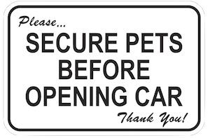 Speaking of, please be mindful of animal safety. Most important: secure your animal before opening the car door. Specifically, this means you should secure your animal with a leash or a carrier before you open any car door — even the driver’s door. We have cardboard cat carriers available for around $7, and leashes are available for free in the garage. You can come by and get one beforehand. In a pinch, or an emergency, for cats the pillow case trick can work just fine, if you can manage to tie a knot with the open end. Most cats do seem to prefer a carrier.